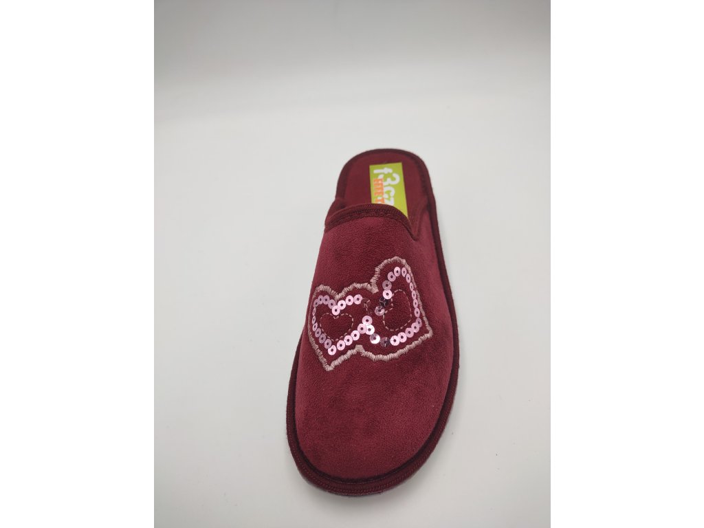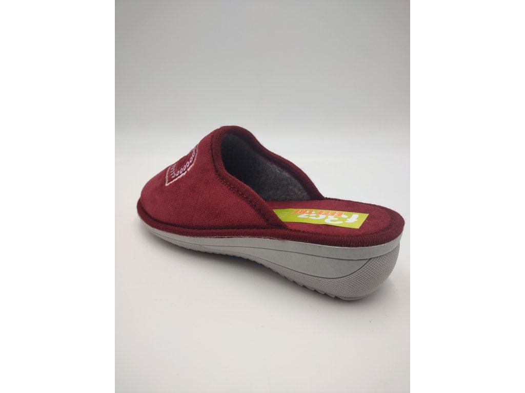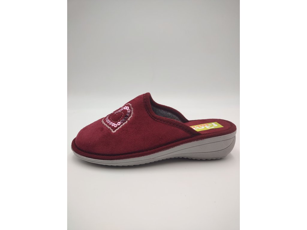 Dámské domácí pantofle na klínku s plnou špičkou a anatomickou  stélkou, jsou vyrobeny z měkkého synt. materiálu plyšového vzhledu, velmi oblíbený model