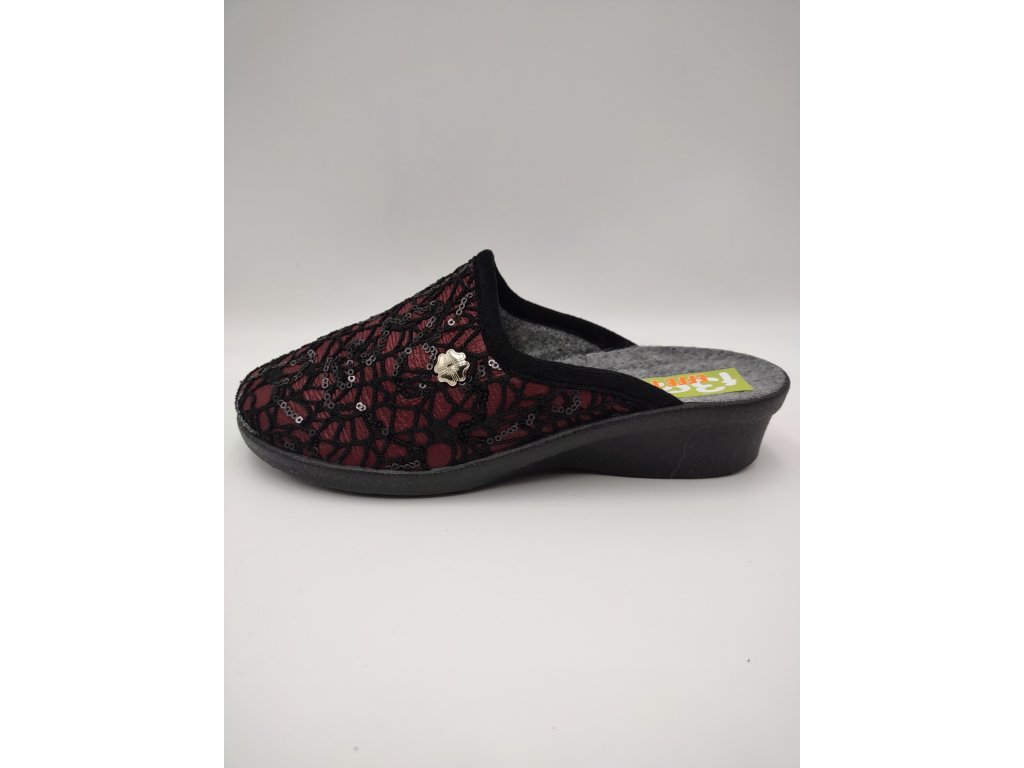 Dámské domácí pantofle na klínku s plnou špičkou a anatomickou stélkou, jsou vyrobeny z měkkého synt. materiálu, špička je zdobena atraktivním štepováním s jemnými flitry, velmi oblíbený model